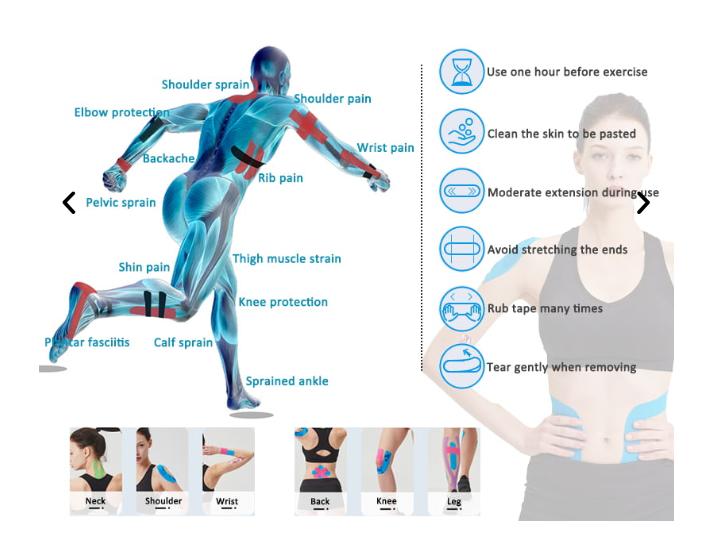 2. เทปคนิเคโลยี Camo Camo สามารถใช้เพื่อป้องกันข้อต่อกล้ามเนื้อและพังผืดและบรรเทาอาการปวดลดผลกระทบต่อข้อต่อและเอ็นกล้ามเนื้อช่วยเพิ่มการไหลเวียนของเลือดและบรรเทาความตึงเครียดของกล้ามเนื้อ Camo Kinesiology Tape ช่วยในการแก้ไขความผิดปกติ, การหดตัวของเอ็น, การบาดเจ็บเอ็นแบบเฉียบพลันและเรื้อรังและการบำบัดการฟื้นตัวของกล้ามเนื้อ